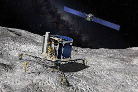 La sonde Rosetta de l’agence spatiale européenne (ESA) a été le premier engin spatial à se mettre en orbite autour d’une comète : 67P/Churyumov-Gerasimenko (67P). Elle arriva à destination le 6 août 2014 et commença à orbiter autour du noyau de la comète à une distance de 100 kilomètres. La rencontre se produisit à une distance de 410 millions de kilomètres de la Terre dans la direction de la constellation du Sagittaire. Lancée le 2 mars 2004, Rosetta avait déjà survolé et envoyé des images d’autres corps du système solaire : Mars en 2007 et les astéroïdes 2867 Steins en 2008 et 12 Lutetia en 2010. Après 30 mois passés ensuite en hibernation, elle se réveilla finalement le 20 janvier 2014 pour commencer une série de manœuvres qui la ralentirent et la rapprochèrent du noyau cométaire jusqu’à son arrivée le 6 août. Lors de son approche finale, elle révéla la forme binaire inattendue du noyau.