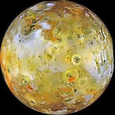 Le premier satellite galiléen en s’éloignant de Jupiter est Io, à une distance de 421 600 kilomètres de la planète et avec un diamètre de 3630 kilomètres. Io est le siège d’une forte activité volcanique qui produit une grande quantité de matériaux riches en souffre et donne au satellite son aspect jaune et rouge de pizza. L’activité volcanique est due à des forces de marée provoquées par l’interaction gravitationnelle combinée de Jupiter, Europe et Ganymède. Cette force déforme périodiquement l’intérieur du satellite, le soumet à des forces de friction qui l’échauffent, et la chaleur ainsi engendrée est évacuée vers l’extérieur par l’intermédiaire de volcans. La surface d’Io est ainsi constamment renouvelée lors d’éruptions volcaniques et les cratères d’impact sont très rares.